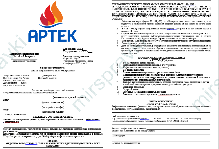 Справка необходима для беспроблемной регистрации в детский центр Артек.