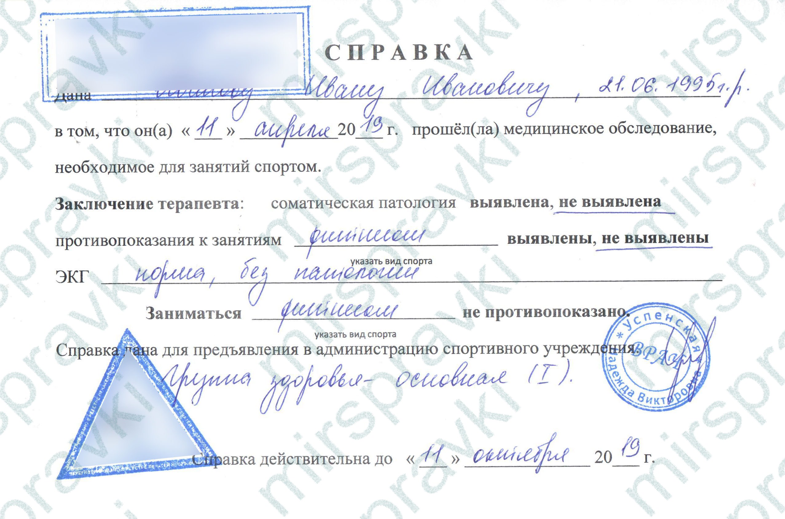 Для того чтобы вам выдали справку в спортзал (тренажерный зал) нужно пройти медицинское обследование: